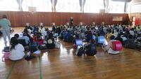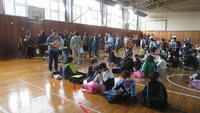 ④保護者の迎えを待つため、児童は3階から体育館に移動しました。