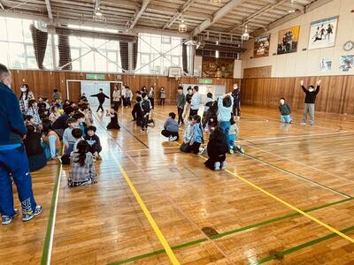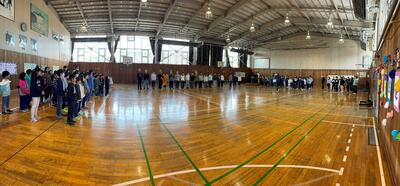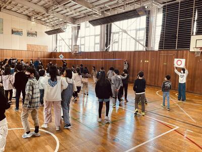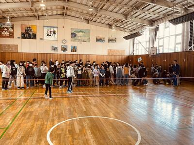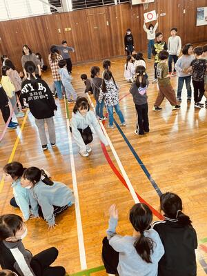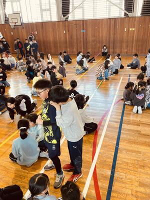 〇児童会主催の○×クイズ 全校児童が集まって楽しみました。