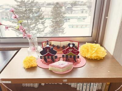 また、もうすぐ雛祭りですね。6年生の教室の前にほっこりする飾りがありました。